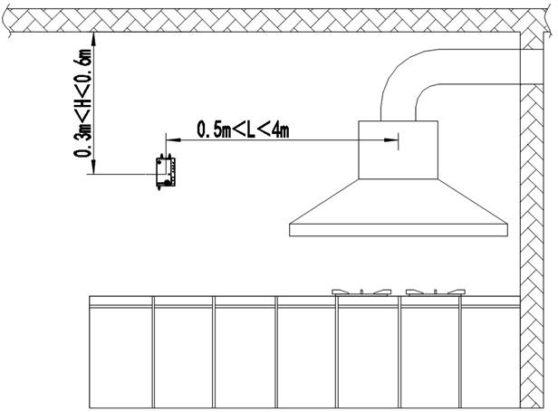 l 安裝在距離燃氣灶水平距離0.5米以外4米以?xún)龋?span>